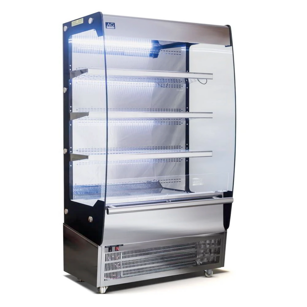 Our 1200mm wide, 1880mm high open-face multi-deck showcase refrigerator is perfect got your cafe, deli, mini-mart, or supermarket. With three shelves and the base of the unit all available for storage, this unit has a total storage capacity of 580 litres. With a highly reflective stainless-steel base and mirrored backing, and LED lights for every shelf your products will look amazing when displayed in our showcase cooler.