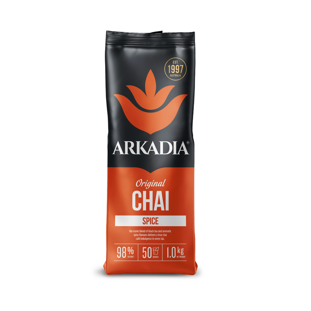 Created for the cafés of Melbourne, Arkadia Chai Tea Spice Latte is Australia’s favourite Chai Tea, with more cups of Arkadia Chai Latte consumed in Australia every day than any other brand. It is as versatile as it is delicious, suitable for Chai Tea, Chai Latte, Iced Chai and Chai Frappes.