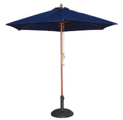 The large navy blue outdoor umbrella from Bolero provides shade and protection for customers in any outdoor area, such as beer gardens, patios and terraces. With an attractive and practical design that gives style to your outdoor areas and an easy to open and close system, this UV and shower proof parasol is perfect for busy venues. Heavy weighted bases available (sold separately) to help to prevent toppling.