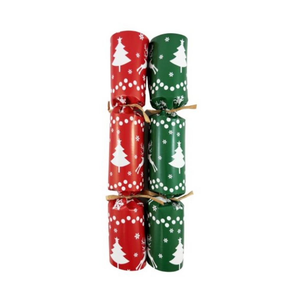 This 10 inch paper bon bon are available in red and green with chic looking reindeers and trees printed in white.