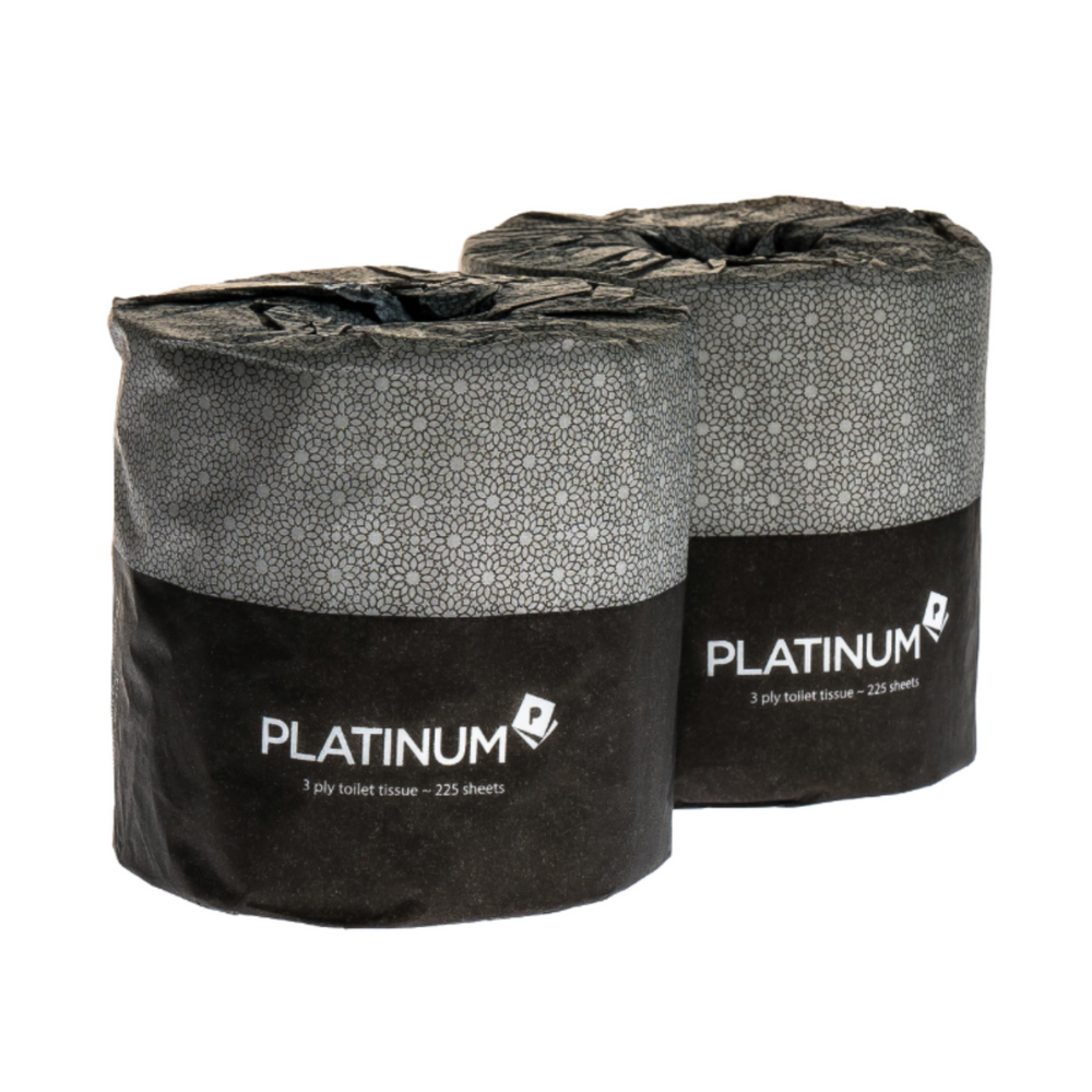 The Platinum range of tissue products signify comfort and style in the washroom. The roll of 225 luxury 3 ply sheets brings a little more softness and indulgence to everyday bathroom use. Rolls are individually packaged in a stylish wrapper.