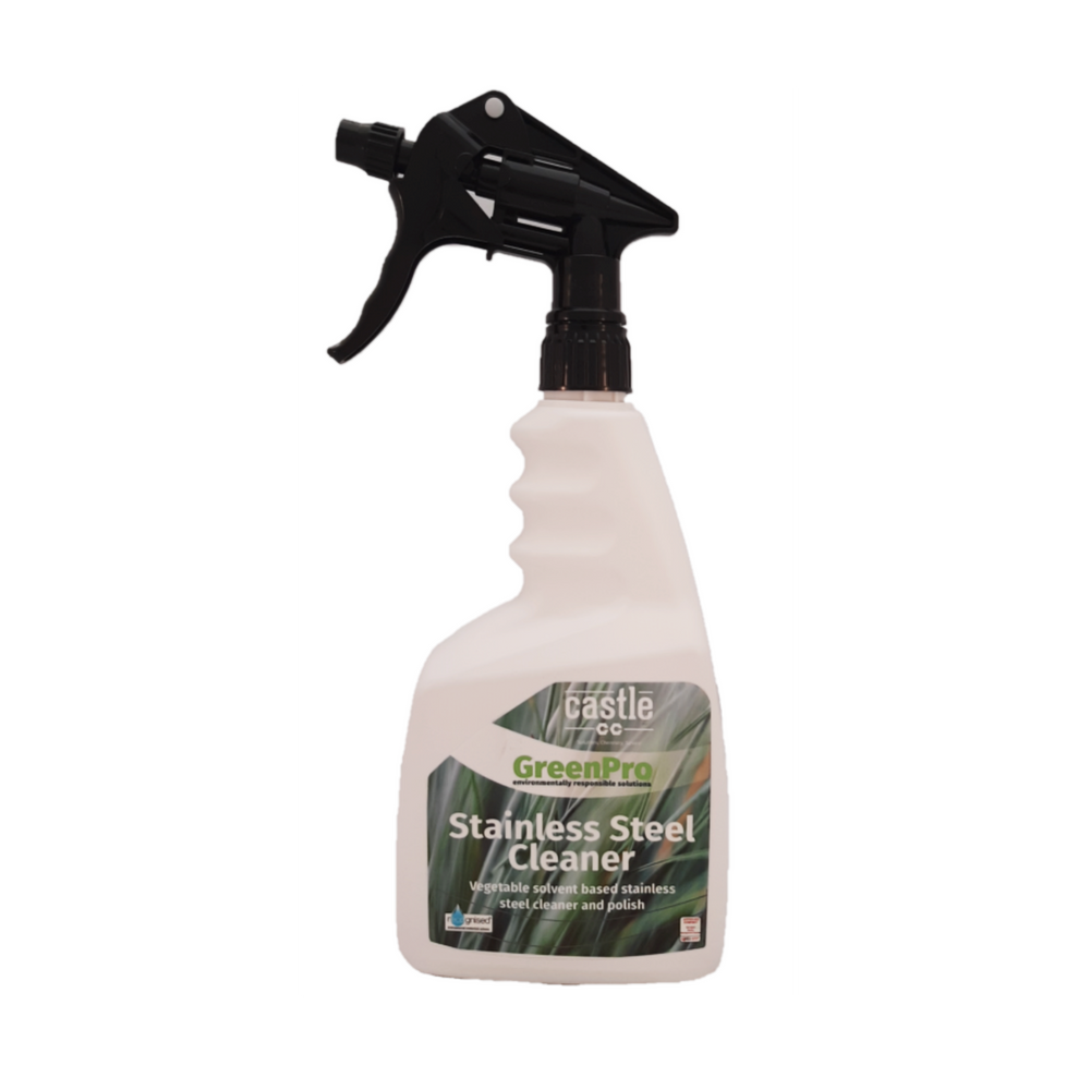 CASTLE STAINLESS STEEL CLEANER AND POLISH represents one of the new generation of Castle ‘Green Pro’ range of products. Derived from natural and vegetable sources. A light yellow clear liquid; CASTLE STAINLESS STEEL CLEANER AND POLISH is an economical, non flammable, bio based, environmentally sound product that can replace many common petrochemical (mineral oil) based products.