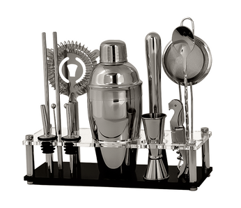 The Complete Cocktail Kit with Stand offers all the cocktail tools you need in an elegant bar kit stand, suitable for use by professional bartenders and home mixologists.