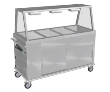 ▪ Unit comes complete with CH.BMHM mobile bain marie hot cupboard plus A frame heated gantry fully fitted and wired. Gantry is welded to bench top