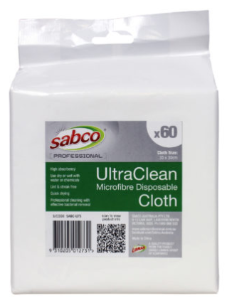 Boasting high absorbance, these cloths can be utilized dry or wet with water or chemical solutions, leaving surfaces lint and streak free. Constructed with a unique material composition, UltraClean Disposable Microfibre Cloth offers quick drying and professional cleaning with effective bacterial removal. Each cloth measures 30 x 30cm.
