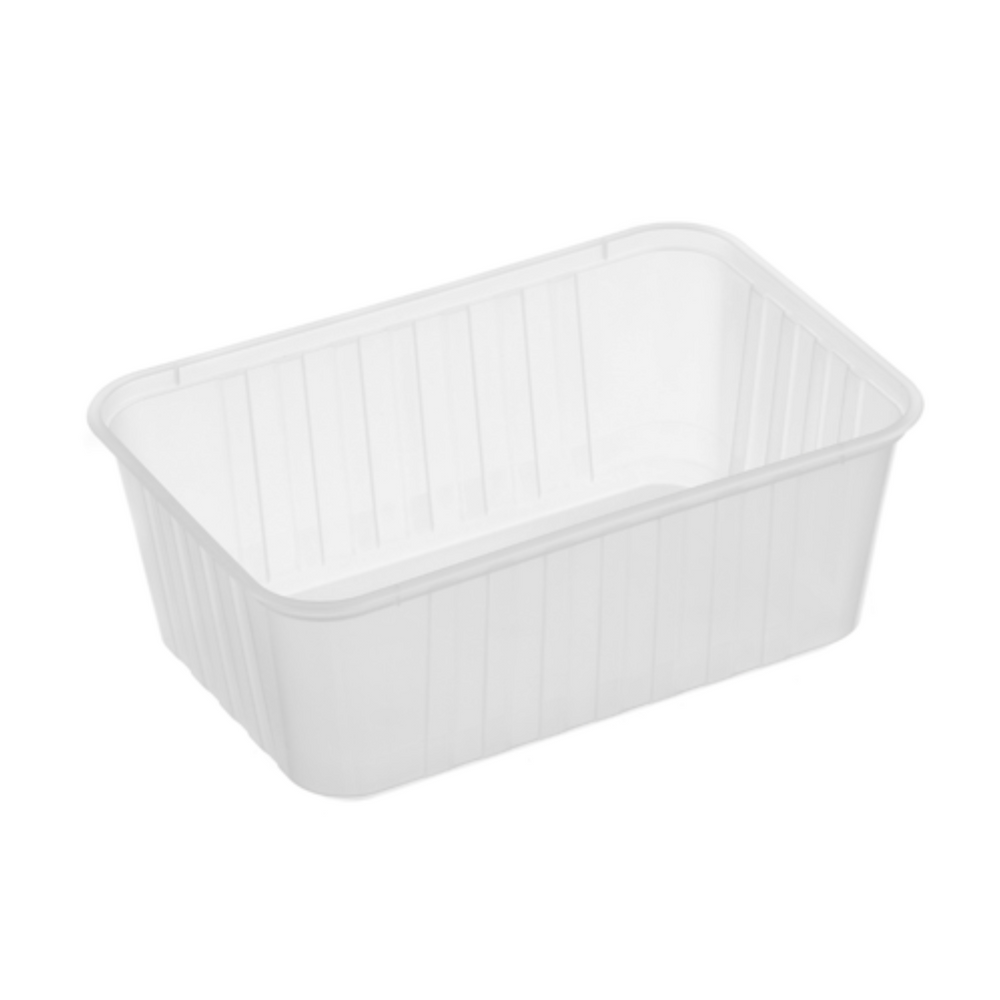 Freezer grade ribbed rectangular container perfect for storing food for a long period of time.