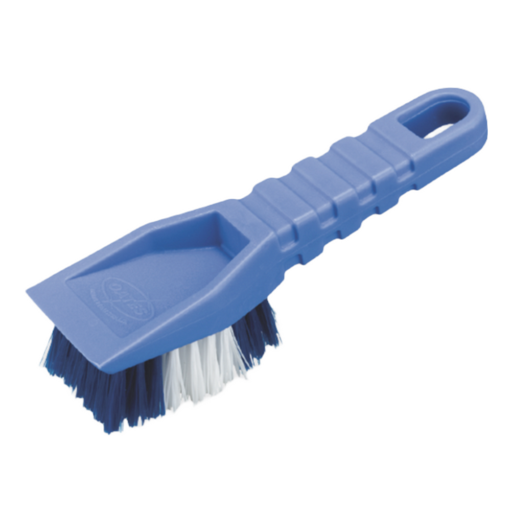 This hand held scrubbing brush has stiff, heavy duty bristles designed for cleaning even the heaviest duty problem areas. Designed with a wide scraper blade to remove debris and stuck on dirt, this product will be your 'go to' tool when scrubbing down an area before general cleaning.