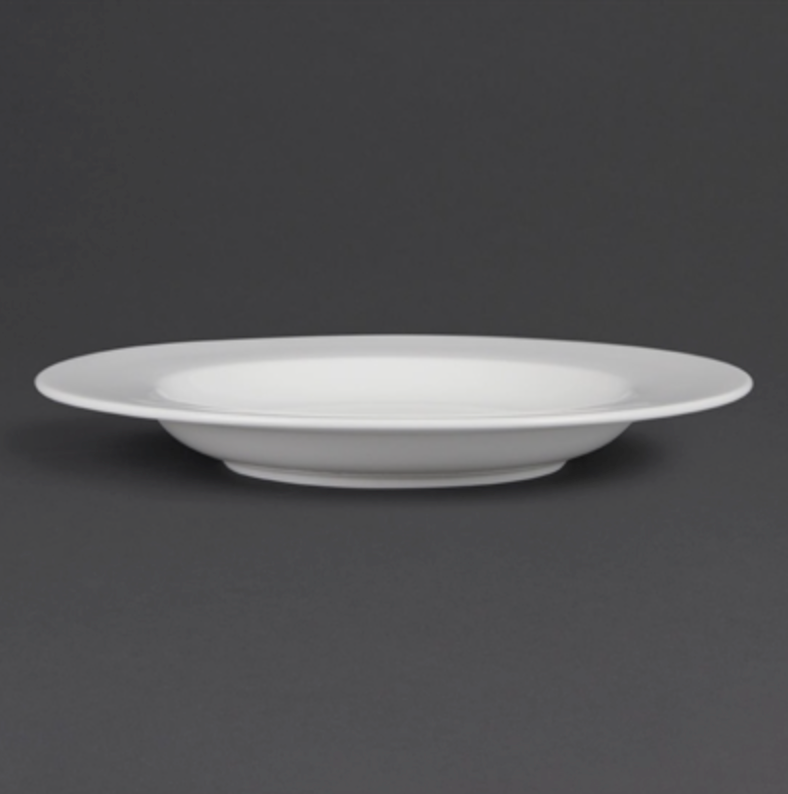 Our great value 12 1/4" pure white pasta plates by Olympia are fully vitrified for heat and shock resistance, the ideal crockery for hotels which want simplicity.