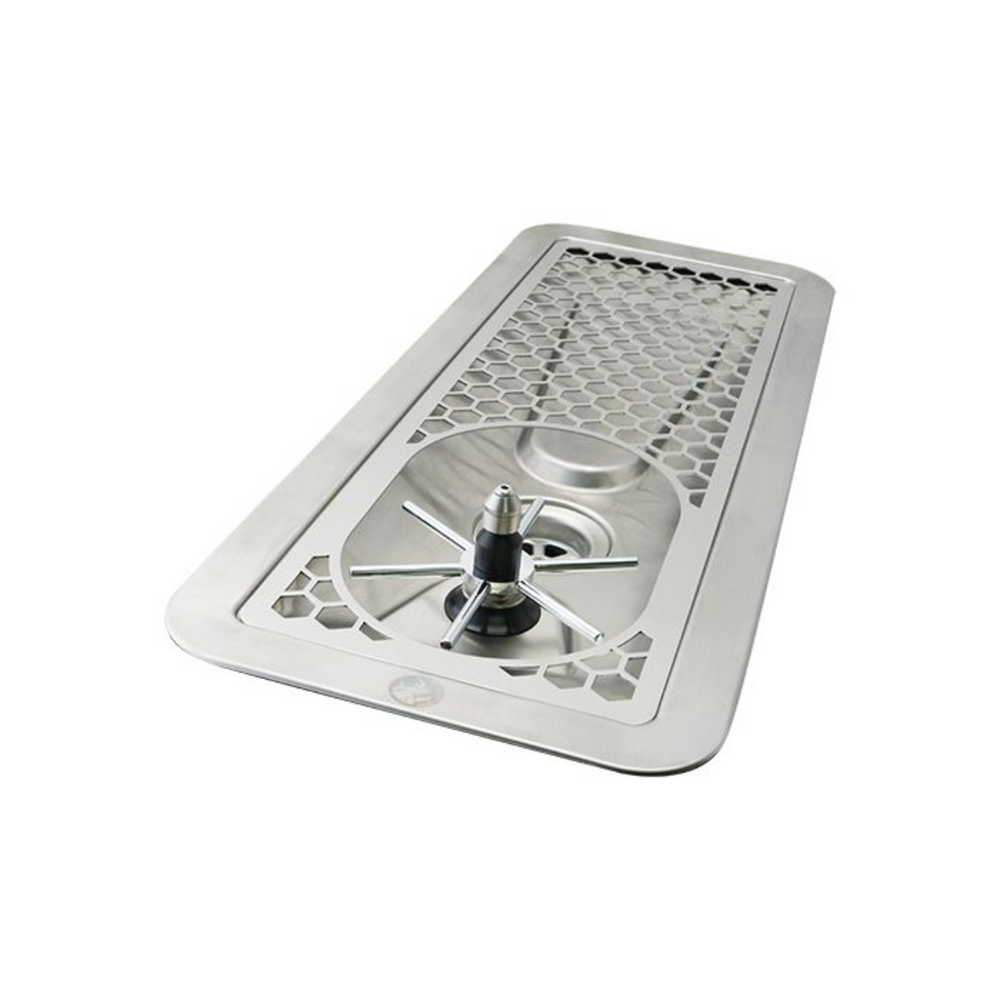▪ SUPERIOR DRAINAGE - The honeycomb grate design minimises the surface area of the drain tray, reducing the static build-up of liquids and making cleaning easy. The low profile body is optimally sloped and angled to ensure effective removal of liquids, reducing common odours caused by static waste. A large drain outlet and a wide grate-free opening near the drain creates a convenient location to quickly discard larger volumes of liquid.