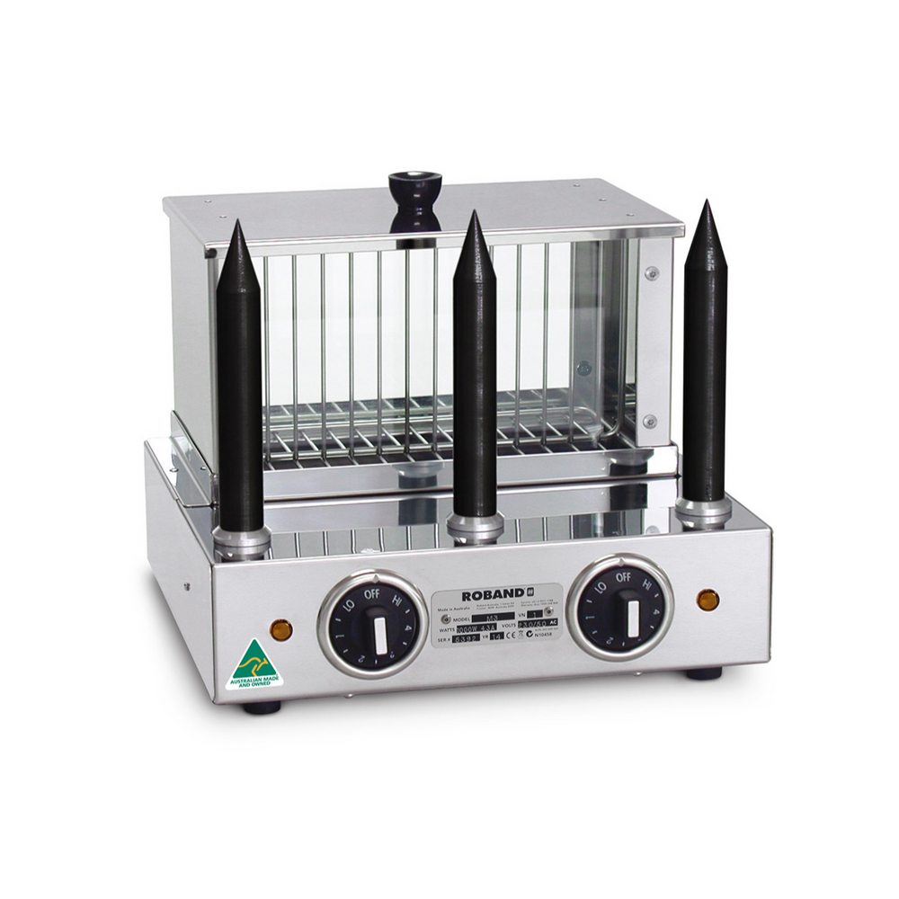Treat your customers to delicious, steaming hot dogs, with the Roband hot dog and bun warmer. The see-through glass tank presents the hot dogs appealingly and the models with spikes heat the buns for a perfect combination.