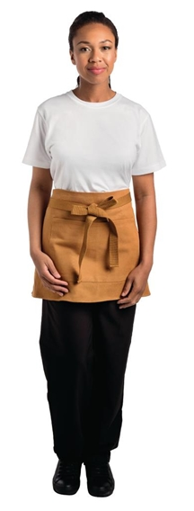 This high quality bistro apron gives your workforce a warm rustic look with effortless practicality for everyday use. It offers protection for clothing and uniforms underneath. A large front pocket provides convenient storage for waiting or bar staff to carry smaller items as needed. It features an enzyme-washed canvas to give it a stylish 'worn' tan look which projects a welcoming image to customers. Made from 100% cotton.