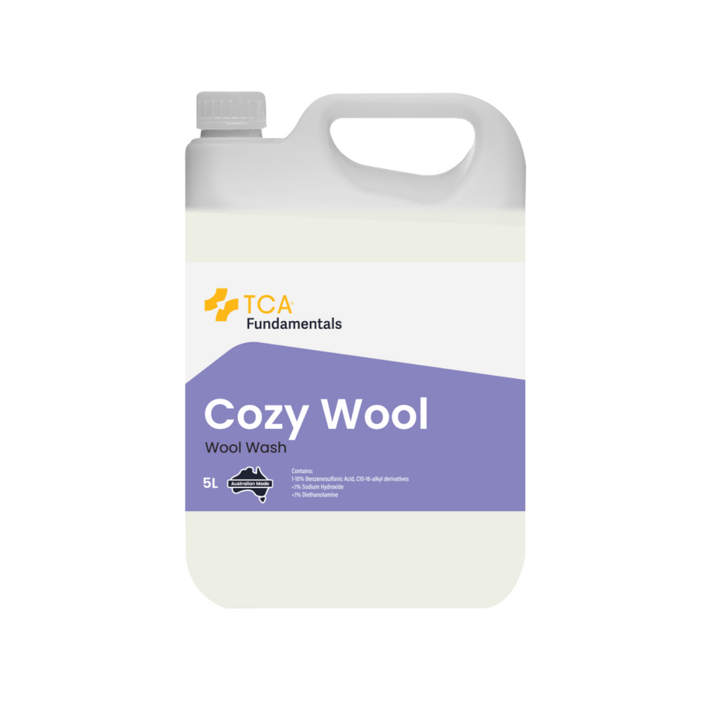 Cozy Wool is a versatile, concentrated, industrial strength surfactant designed with no perfumes for minimum skin irritation. Cozy Wool contains no caustic and instead relies on a special blend of non-inonic, anionic and inorganic detergents to emulsify and rinse clean. The specially selected wetting agents ensure rapid penetration of fabric layers for extra cleaning performance. Cozy Wool also contains water softeners to ensure that fabrics are left soft and clean. Cozy Wool is suitable for both front and top loaders.
