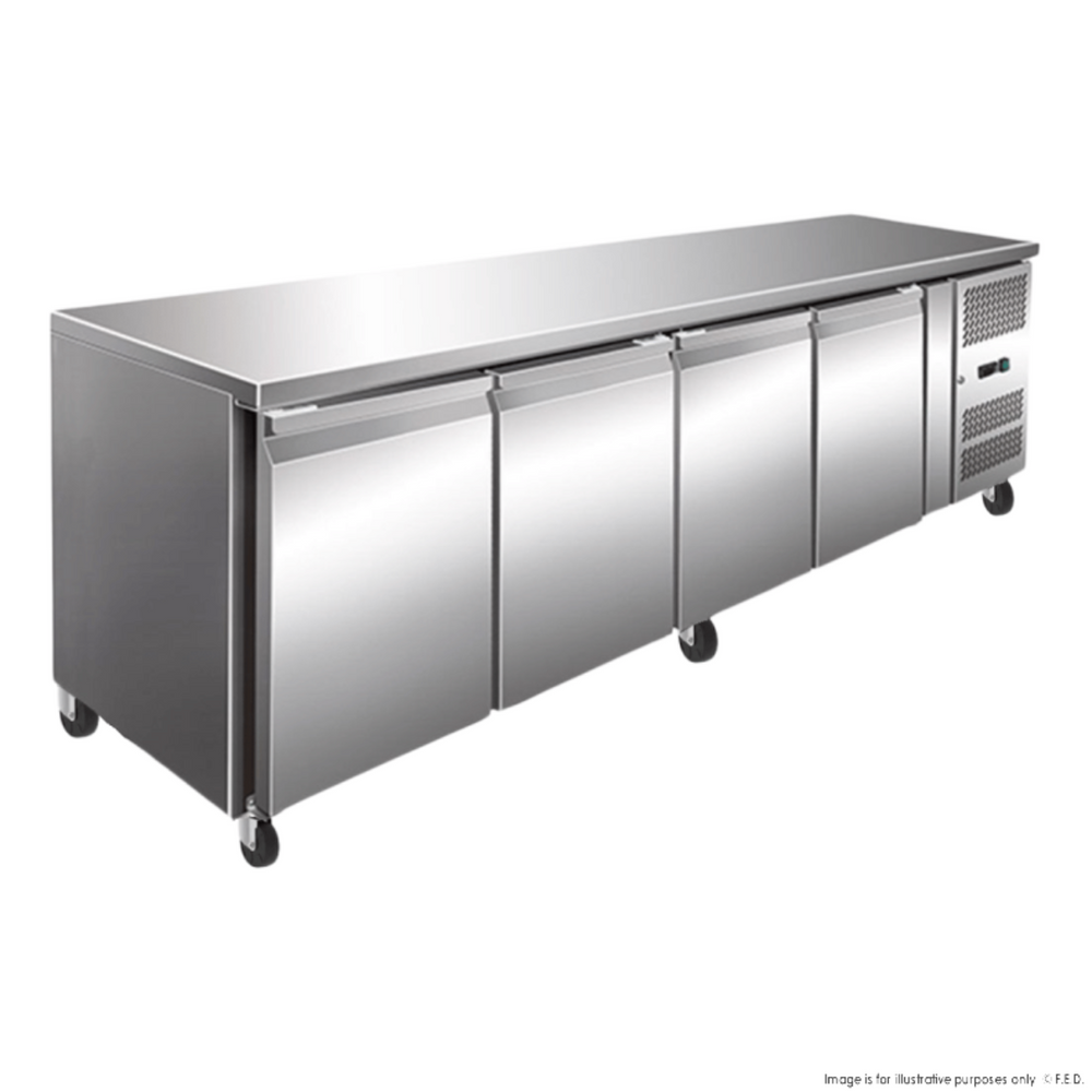 The (GN4100TN) is an impressive four-door stainless steel workbench fridge that’s able to withhold up to 615.8 litres with dimensions set at 2230x700x850mm.