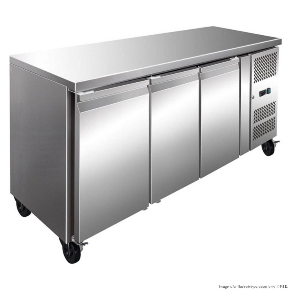 FE3100TN is an impressive medium-sized three door commercial workbench fridge packing several features, with a capacity of 386 litres and dimensions set at 1795x600x860mm.