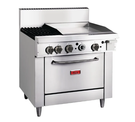 From leading brand Thor, the 36" LPG Freestanding Oven range boasts exceptional power and reliability for the busiest of restaurants, canteens and other food outlets. With the added versatility of a heavy duty 24" griddle and two open burners, the oven range is perfect for cooking multiple foods at once. The robust stainless steel exterior is both hard wearing and easy to clean, whilst the durable dial controls are precise and easy to use.
