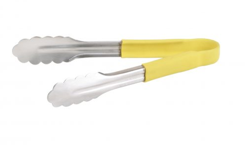 Minimise the risk of food contamination with colour coded tongs. Built to last these tongs have a stainless steel construction with a vinyl colour handle.