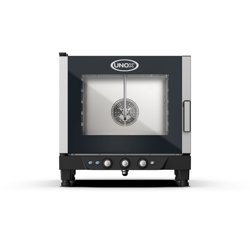 Dry air-steam combi oven with analogical control and 304 stainless steel cooking chamber. Time, temperature, steam percentage and 2 fan speeds function. Allows to perform traditional cooking processes such as steaming, browning, grilling, frying and cooking of fresh and frozen bakery products.