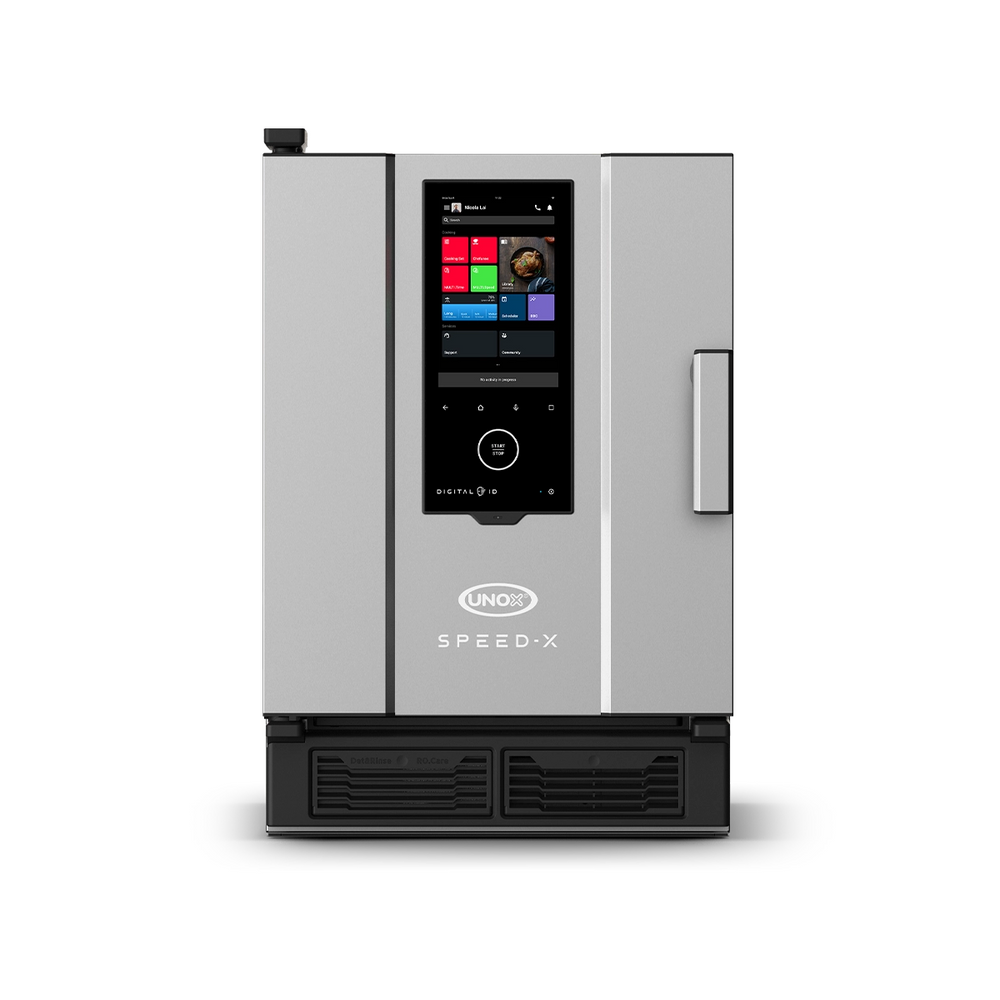 SPEED-X™ is the first oven to be both a combi oven and a speed oven complete with automatic washing. SPEED-X™ has a capacity of 10 GN2/3 trays with 35 mm pitch or 5 GN2/3 trays with 70 mm pitch in combi mode and a position dedicated for the SPEED.Plate for cooking up to 4 items simultaneously in speed mode. The revolutionary HYPER.Speed technology combines combi cooking with microwaves and significantly reduces the cooking time of sandwiches and precooked dishes compared to traditional speedovens. The automatic washing with integrated detergent tank simplifies cleaning operations, allowing the speed cooking of raw foods such as vegetables, meat, fish and much more. The AISI 316L stainless steel cooking chamber combined with the RO.Care water filtration system allows you to connect SPEED-X™ directly to the water network without the need for external filtering systems even in the presence of very hard water or with a high level of chlorides.