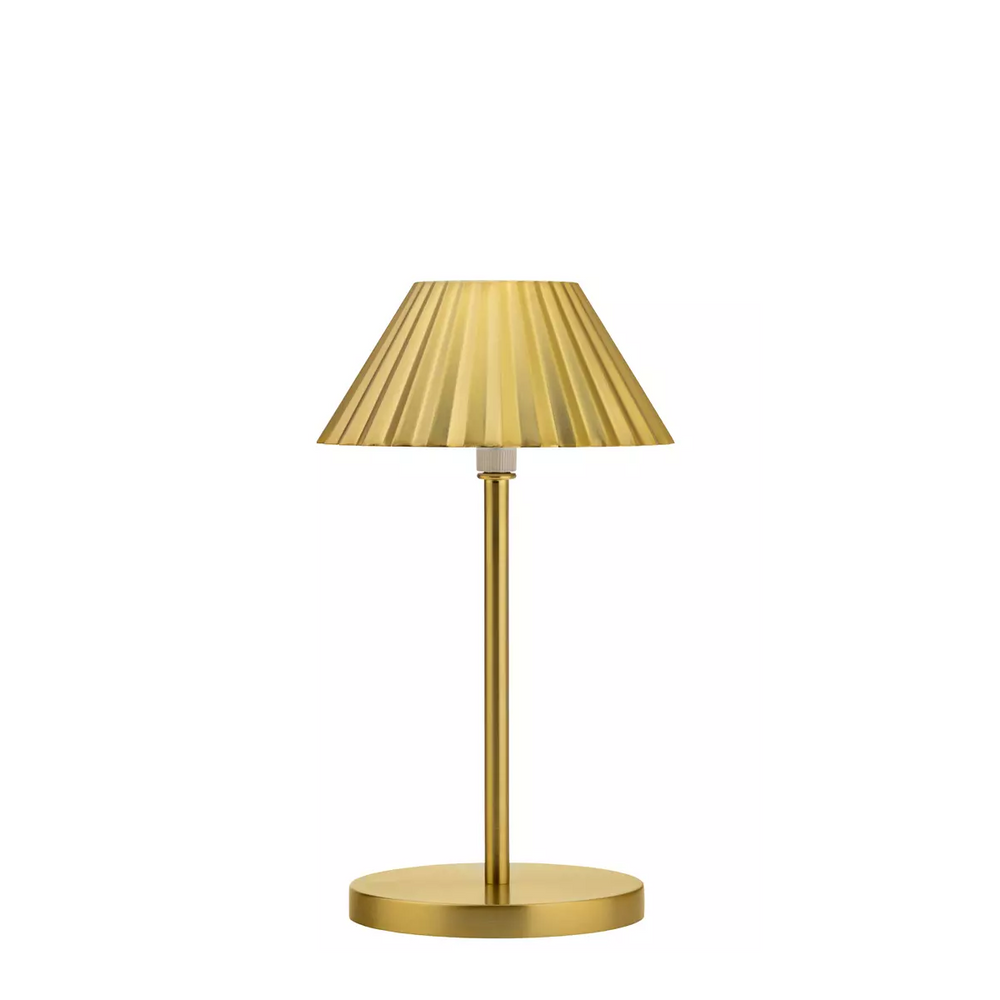 Unleash the freedom of illumination with the Utopia Aruba LED Cordless Lamp in gold. This sleek lamp provides warm or cool white light options, all conveniently controlled with a soft-touch switch. Enjoy cordless illumination for up to 9 hours on a single charge, thanks to its built-in battery. Plus, the stepless dimming feature lets you create the perfect ambiance for any occasion. For added peace of mind, the Aruba boasts an IP44 water-resistant design, making it ideal for patios or even bathrooms. Simply recharge using the included charging base and USB cable for endless lighting possibilities.