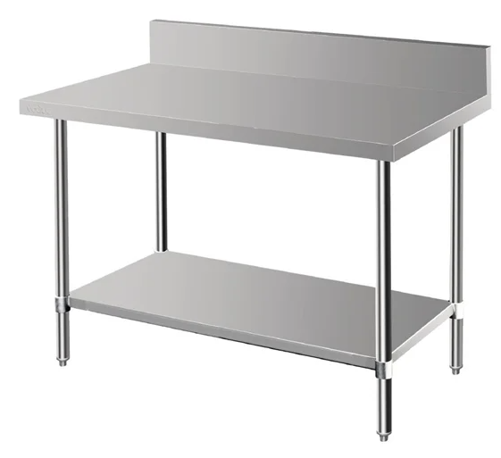 Create a more hardwearing and hygienic prep area with this 1500mm wide Vogue premium stainless steel kitchen table. Crafted from high quality 304 stainless steel and boasting galvanised steel legs, the 1.2mm thick worktop is immensely strong and sturdy, allowing it to endure the rigours of constant use in any busy commercial kitchen. The stainless steel construction also makes this worktop exceptionally easy to clean, helping you keep it sanitary and ready for immediate use at all times. A convenient 100mm splashback also prevents water, food and utensils from falling behind the unit, keeping your floors and walls clean and tidy for a more hygienic kitchen. Completed with a handy undershelf, the table also gives you incredibly practical storage space for your equipment, helping you make the most of the room in your kitchen.